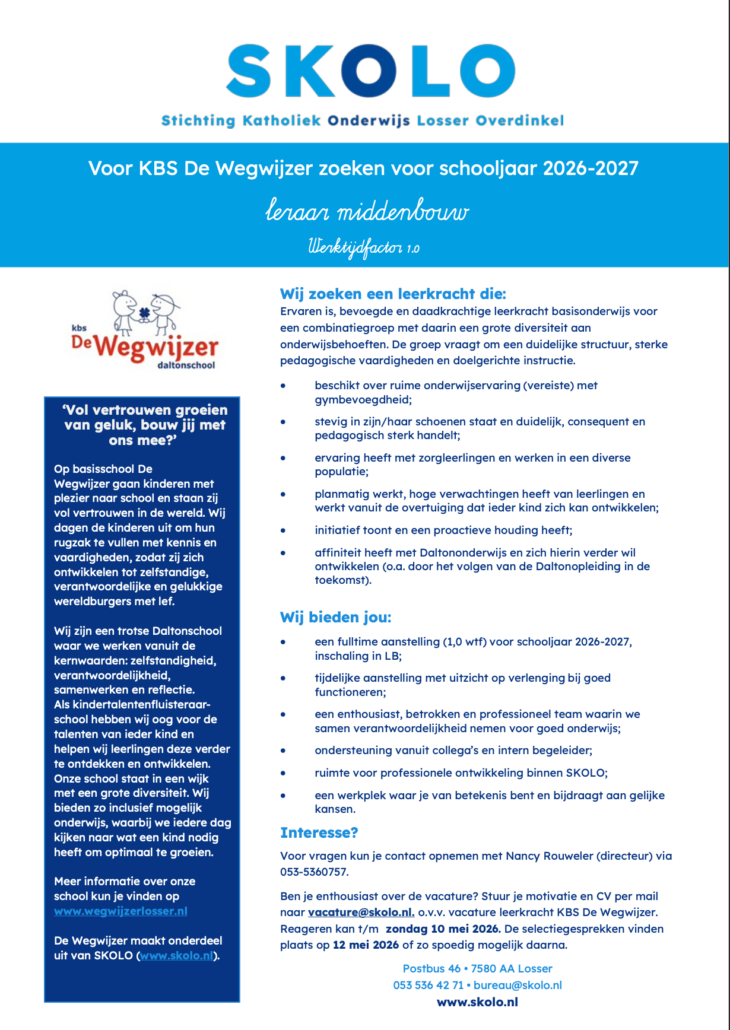 Dat is waar wij voor gaan en staan op de Wegwijzer. Dé plek waar wij kinderen een goede en gelukkige basisschooltijd bieden. We dagen kinderen optimaal uit om hun rugzak met kennis en vaardigheden te vullen. Dit doen wij door samen te werken aan de vier kernwaarden van onze gelukswijzer: